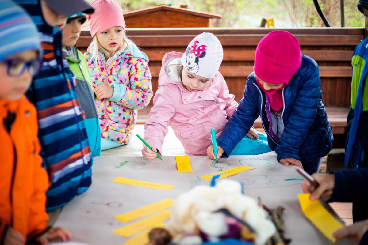 Připravujeme prostředí s různorodými materiály a pomůckami, využíváme venkovní prostředí (zahrady, přírodní stanoviště, ulice, parky), v interiéru pracujeme s přírodninami a autentickými objekty.